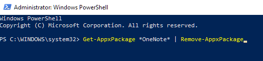 Get-AppxPackage *OneNote* | Remove-AppxPackage