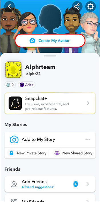 - Tap on the Bitmoji icon in the top-left corner to view your profile.