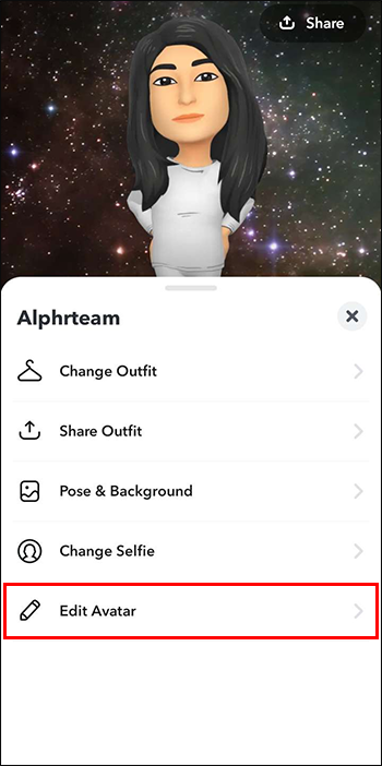 - Press on your 3D Bitmoji avatar, visible in the background.