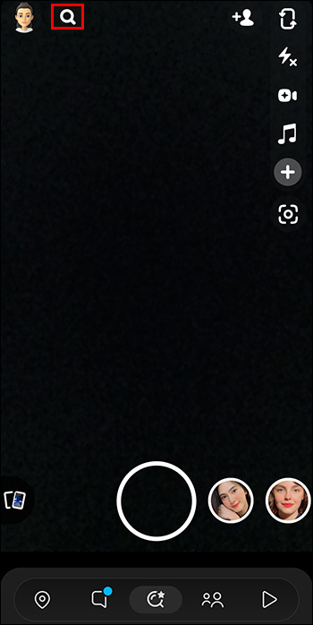 - Select the search option in the top left corner of your Snapchat interface.