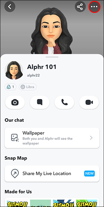 - Select their profile image. This will open a chat with the profile in question. Select the three-dots menu in the upper right-hand corner of the screen.