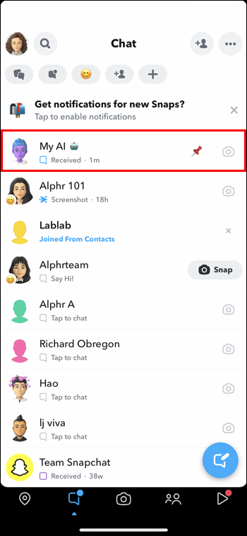 For Snapchat+ subscribers, the My AI tool is on by default. You just have to open your Chat screen to access it. Follow the instructions below: