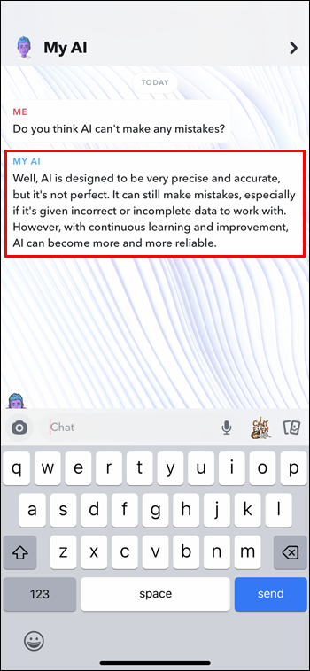 You can give the My AI bot a custom name or customize its chat wallpaper, much like with any other Snapchat user. My AI works better the more you use it. The way the app is built allows the bot to curate more relevant responses based on your needs and preferences.
