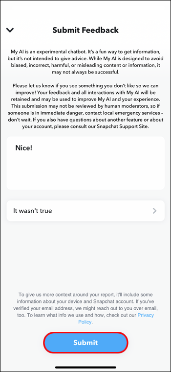 - Press Submit Feedback.
