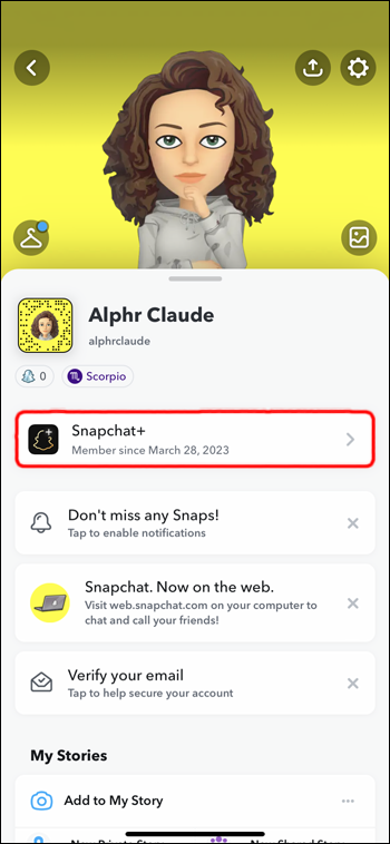 - Go to the Snapchat+ management system.