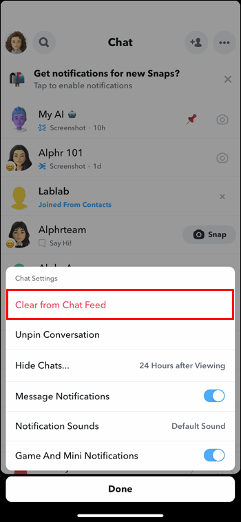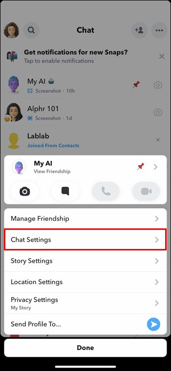 Note that following these steps won’t remove the tool from your Chat screen. To remove My AI from the Chat section, follow these steps: