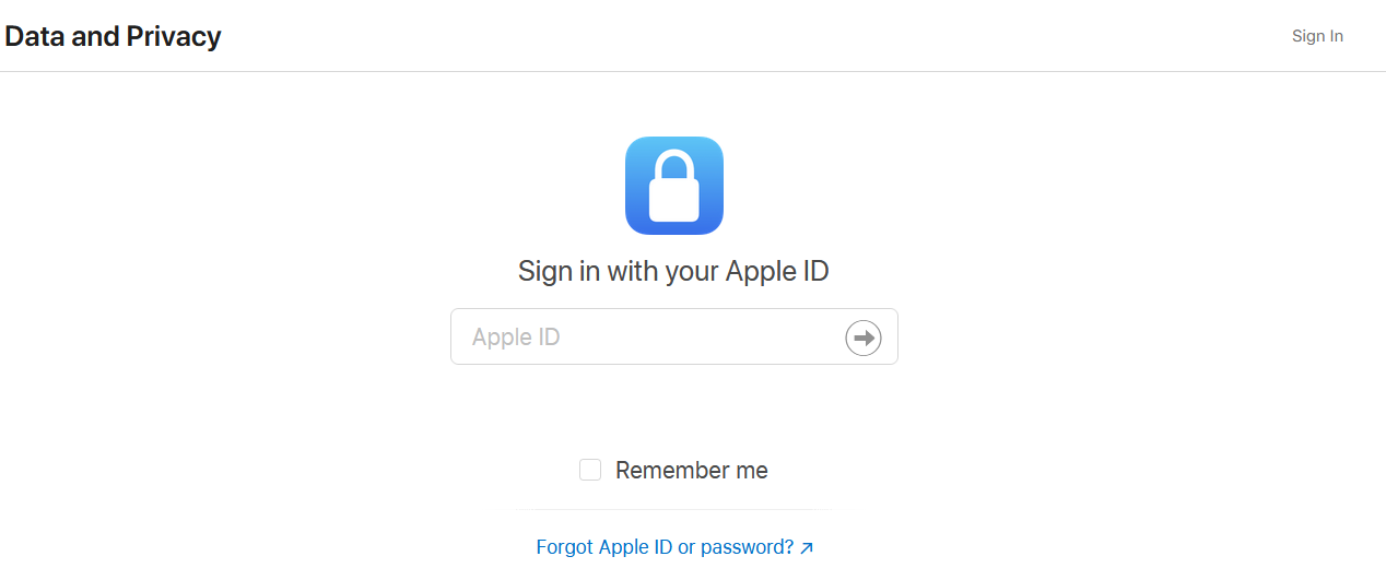- Log in on the Apple privacy website linked above.