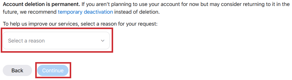 Be mindful that deleting your account is permanent, and both the account and ALL data that has not been backed up will be gone forever. If you’d like a less permanent solution, there is an option to temporarily disable your account on the Privacy Site. You can also try any of the methods listed in the following sections of this article.