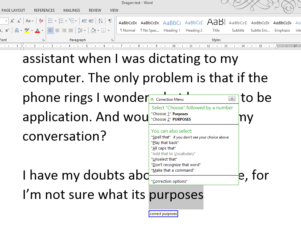 You might forgive Dragon for mistaking “faults” for “thoughts” in the first sentence, but having worked out that we meant “faults” in the second sentence, it should have inferred that we meant “faulty software” rather than the nonsensical “40 software”. The failure to add a second “o” on “to” at the end of the final sentence was another common error, as was missing possessive apostrophes and the constant transposing of “its” and “it’s” – all basic errors that were picked up by Word’s grammar checker but seemingly considered acceptable by Dragon.