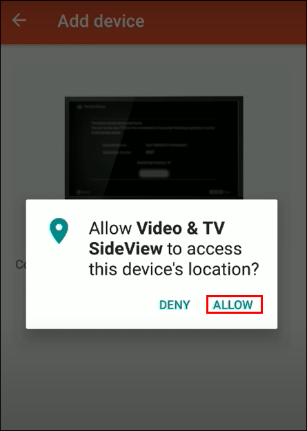 - Select “Allow” to allow Video & TV SideView to access the device location.