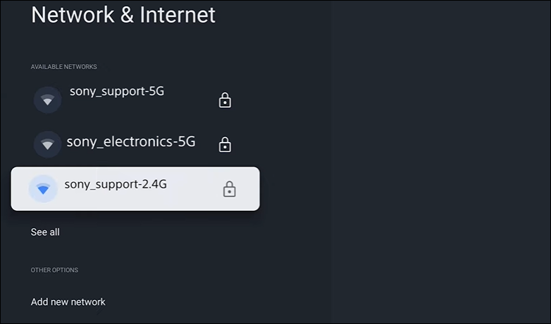 To use this step, your Sony TV model must have built-in Wi-Fi connectivity. Ensure you’ve got your login info for your Wi-Fi network, then do the following to link it to your Sony TV:
