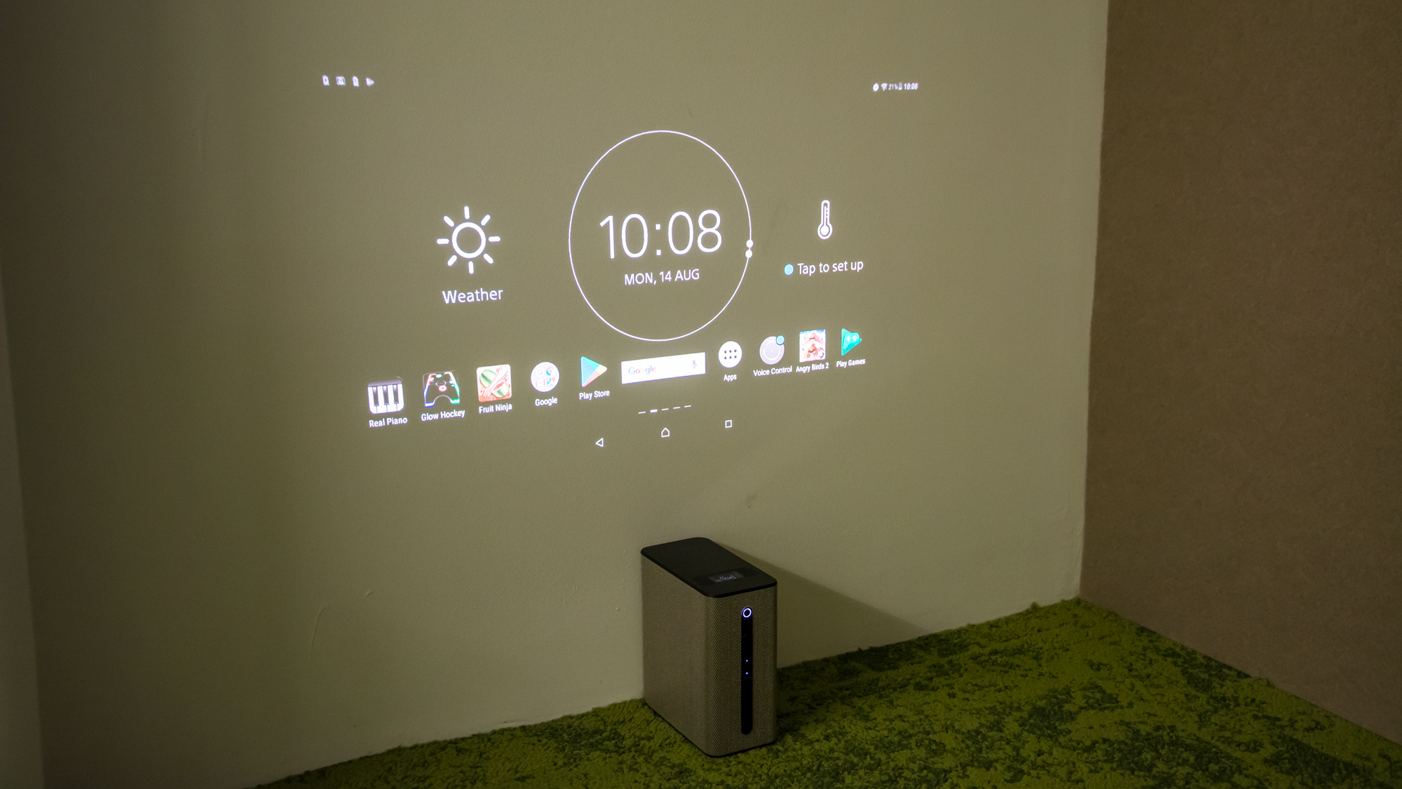 Things get even worse when you set the Xperia Touch beside a wall. Place it directly against the surface and the projector will shine its 23in display upwards, or pull the device backwards to scale the screen up to 80in. But with a resolution of 1,366 x 768 and a paltry brightness of only 100nits, don’t expect to see much detail at this size unless all the blinds have been drawn.