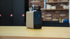 Sony’s projector weighs 932g and, at 69 x 134 x 143mm, it’s dinky enough to fit inside your backpack. Plonk it on a surface and it will project a 23in image that can be touched much like a tablet. Stick it by a wall and it can scale the projection up to 80in diagonal. In theory, it can turn almost any white surface in your home into a touchscreen, or pull it back to make a canvas for larger, more standard projections. In practice, however, this ambition falls short.