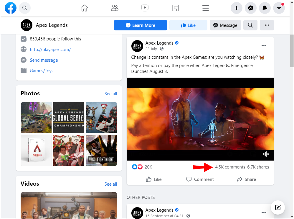 - Click on the tab that shows the number of comments the post has received.