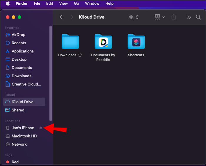 - Launch “Finder” and select your iPhone under “Locations” in the sidebar.