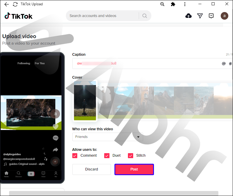 Luckily, you can upload and tag people in your TikToks from a desktop now. The steps are: