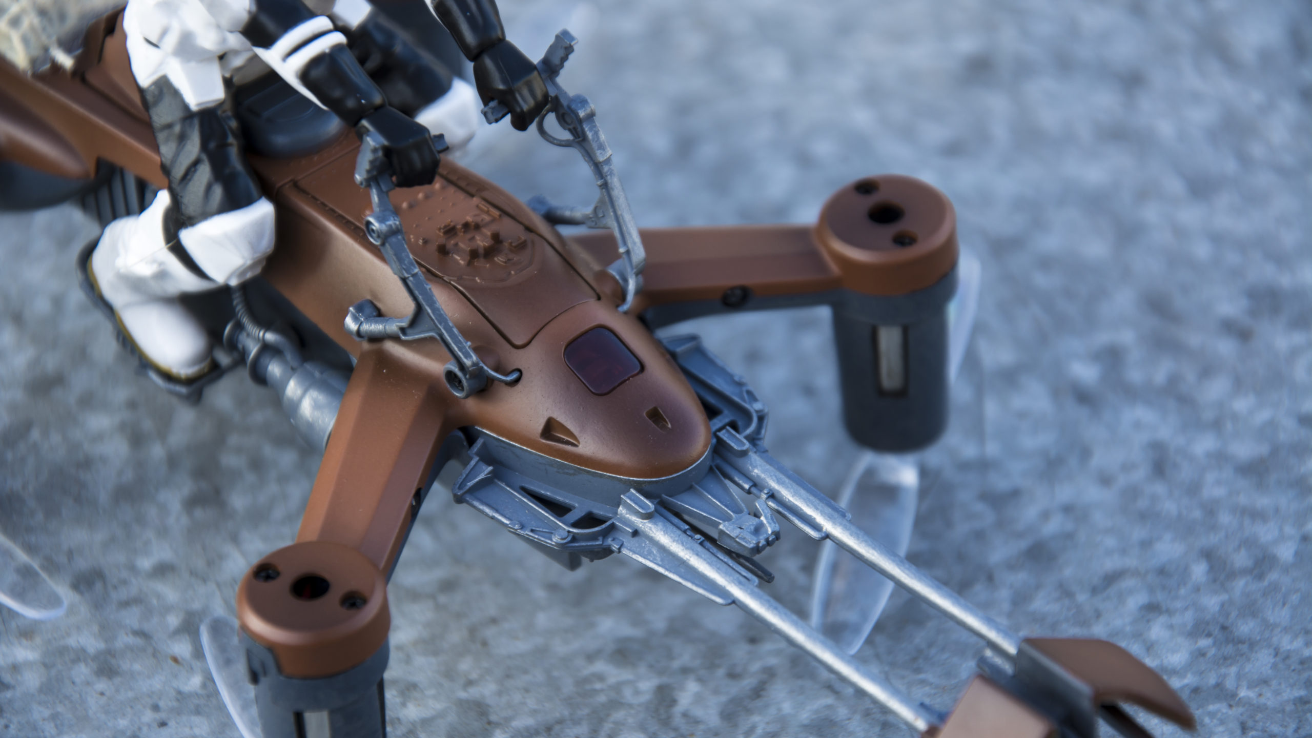 [gallery:1]The drone itself is hand-painted (I wish my Star Wars miniatures were painted with this much attention to detail) and looks great. The only unsightly aspect of the model are the arms the propellers are attached, but they still fit in nicely with the overall Star Wars aesthetic, and you barely notice them when the drone is in the air.