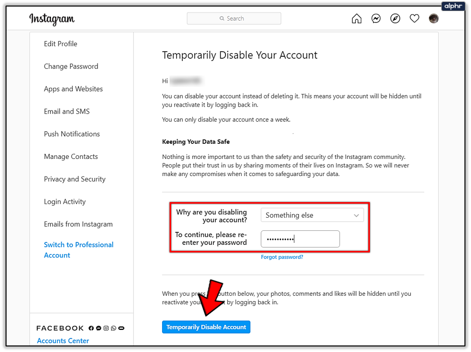 Alternatively, you can deactivate your account for a limited time. Read on to find out how: