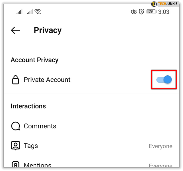 - Under Account Privacy towards the top, toggle on Private Account.