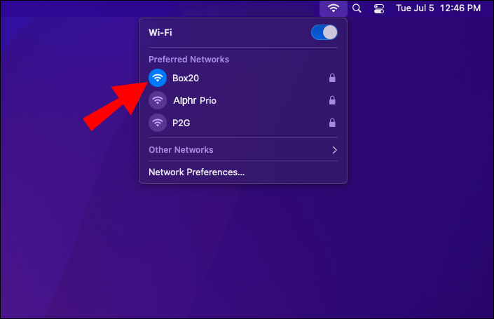 - Click the Wi-Fi icon in the top right corner of the screen.