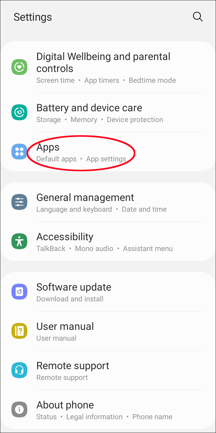 - Open your Settings and navigate to “Apps.”