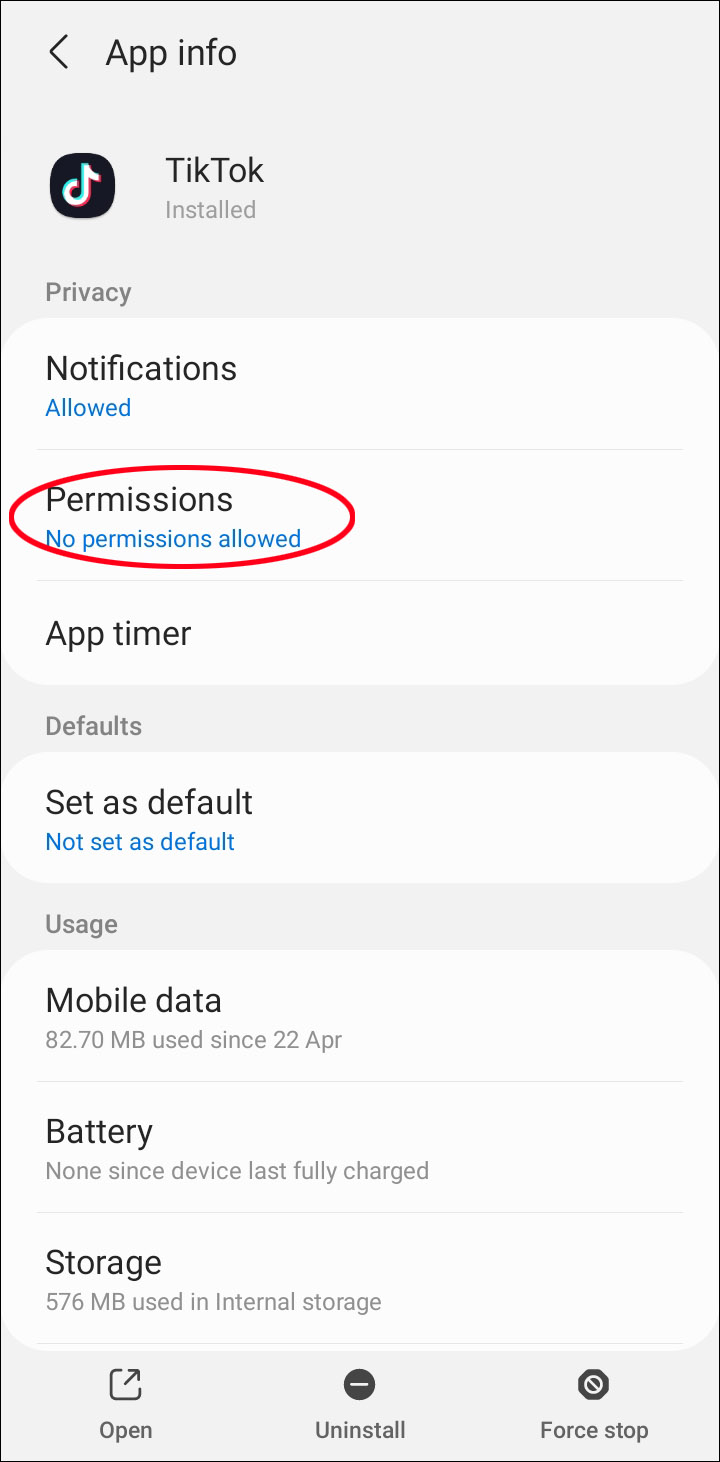 Another common issue is failing to give TikTok the permissions it requires. On Android, find this setting in the following way: