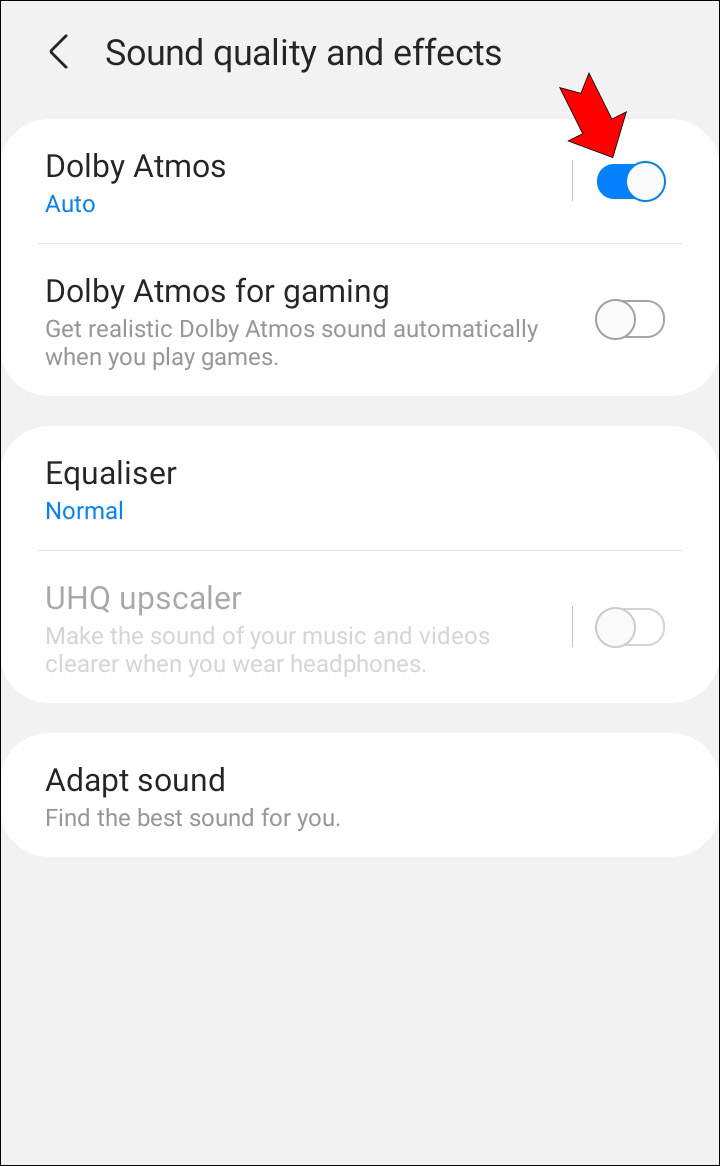 - Enable “Dolby Atmos” and reopen TikTok to see the change.