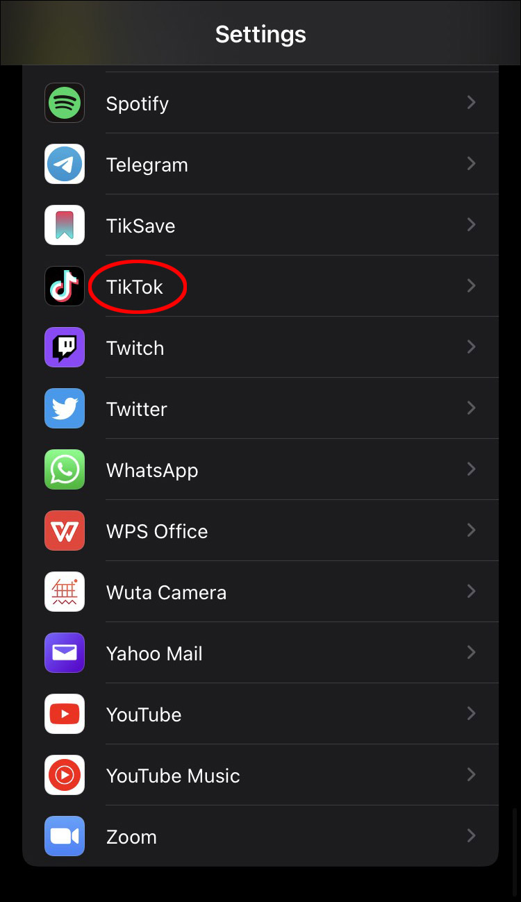 - Scroll down to find “TikTok” and tap it.