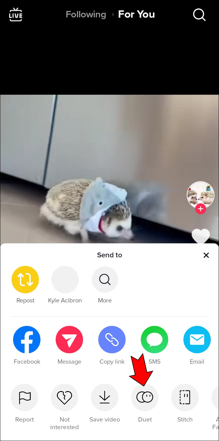 - Go to the video you want to Duet with.