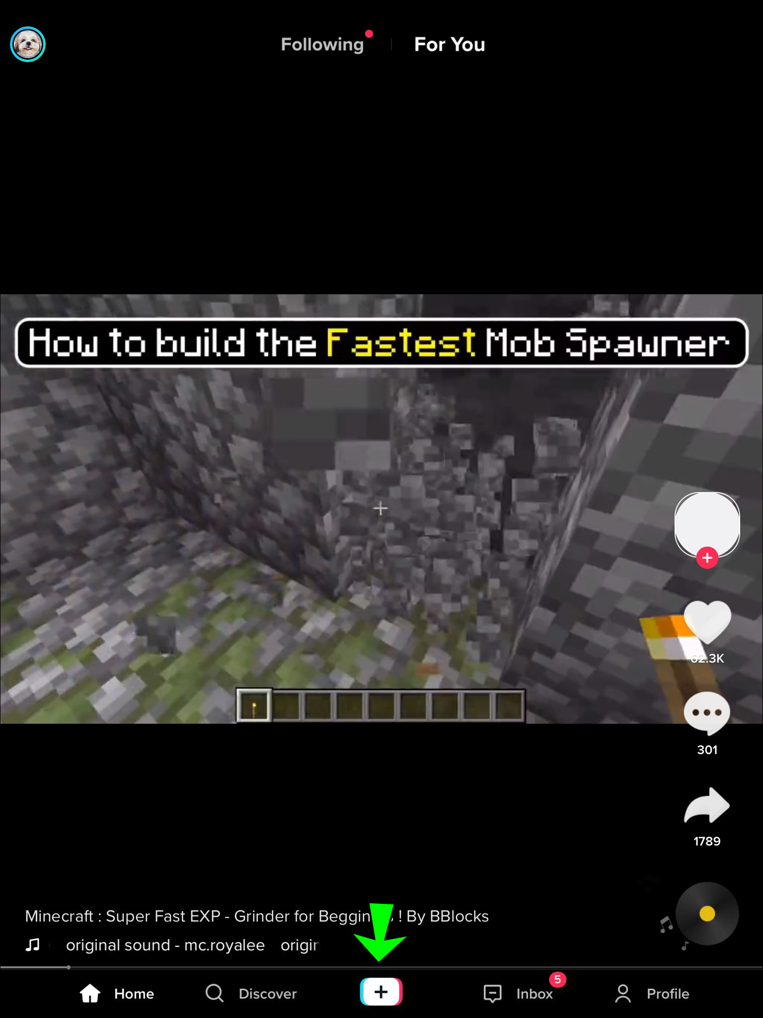 - Press the “+” button to start recording your TikTok.