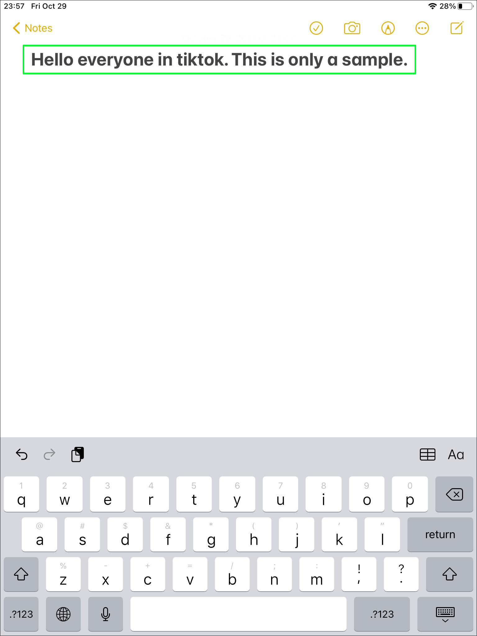 - Go to “Notes” again and select the text you’ve written down.