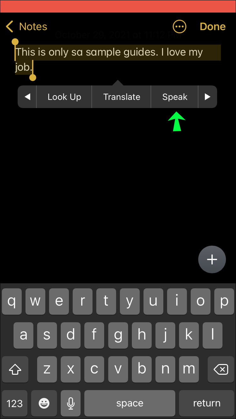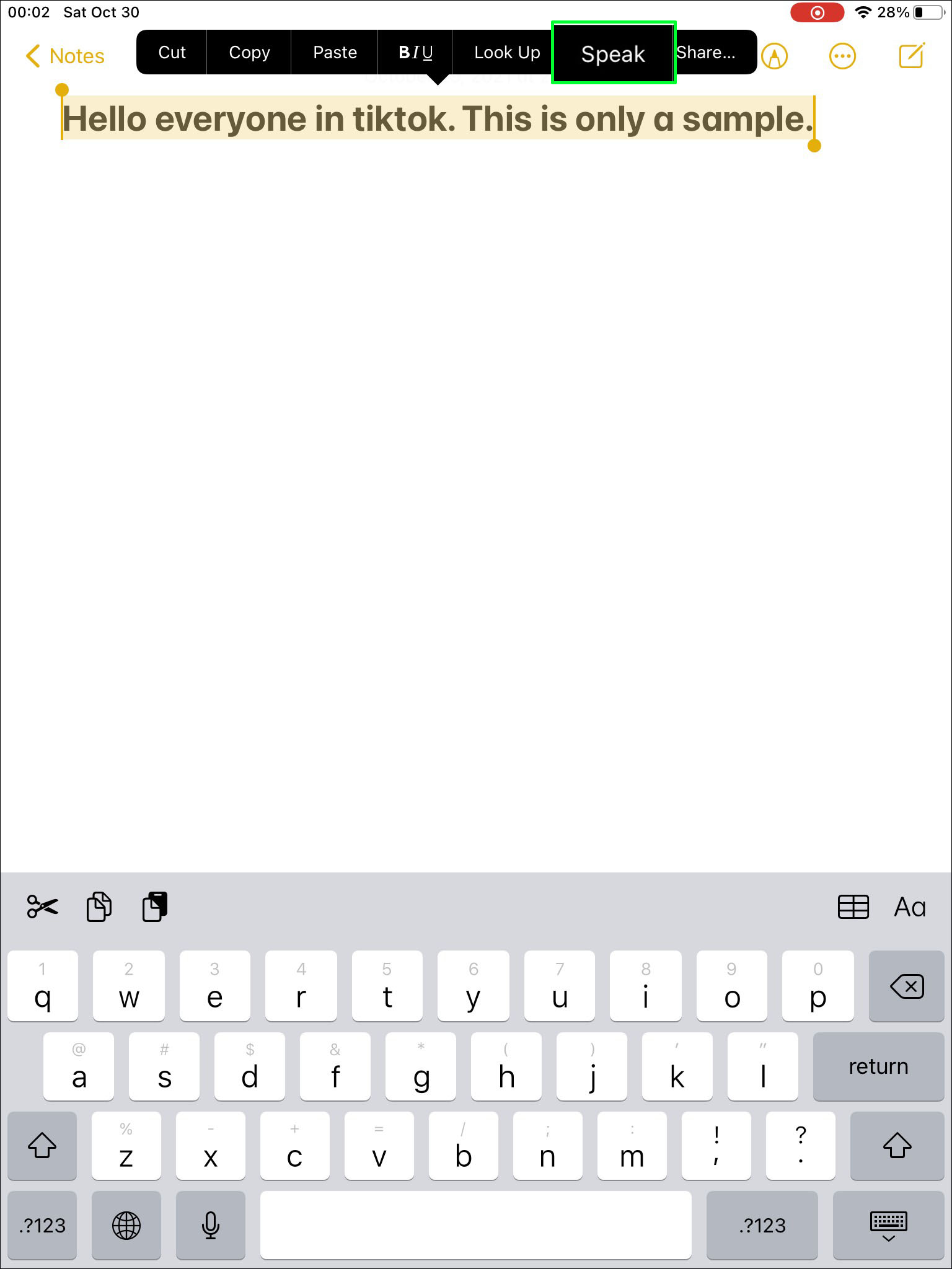 - Tap on the “Speak” feature and let Siri read the text aloud, and stop recording when she’s done.