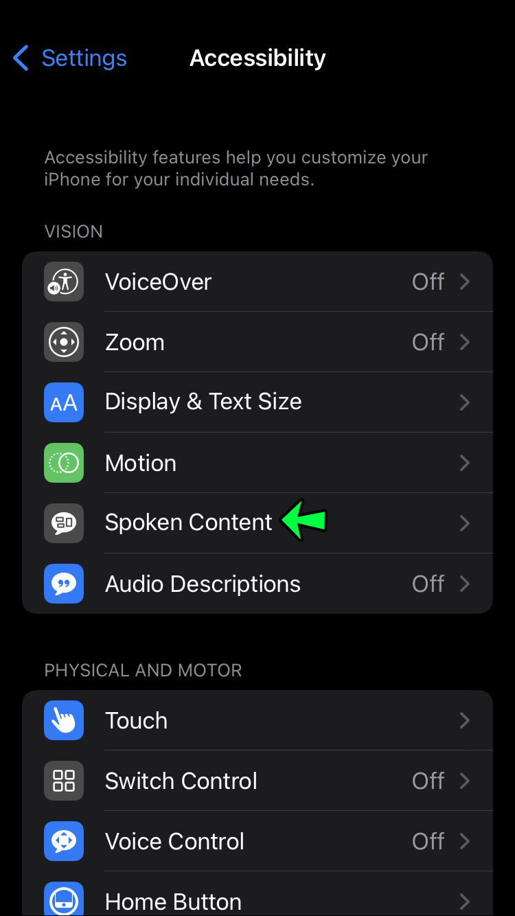 - Select “Spoken content.”