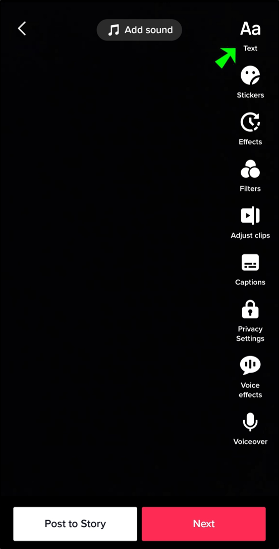 - Type out the text you wish to appear in your TikTok video.