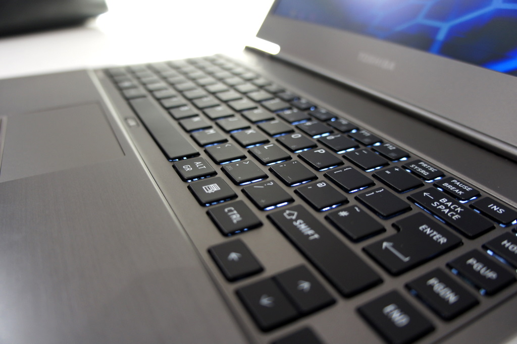 The backlit keyboard is very similar to that of Toshiba’s existing 13in notebooks. In our snatched minutes with the Z830, we noted a soft, cushioned key action, and there’s not a jot of flex anywhere to be found. The wide keys felt a little too squat for our liking, but we’ll hold off judgement on the keyboard until we get to play with the Z830 for a little longer.