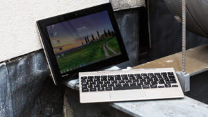 If you’re not on the move, however, you can connect an external keyboard to the USB 2 port on the keyboard base. Or, you can connect one directly to the tablet via its micro-USB port, with a suitable USB OTG adapter. Note that you’ll be unable to charge it at the same time, however, since this port is also used for power.