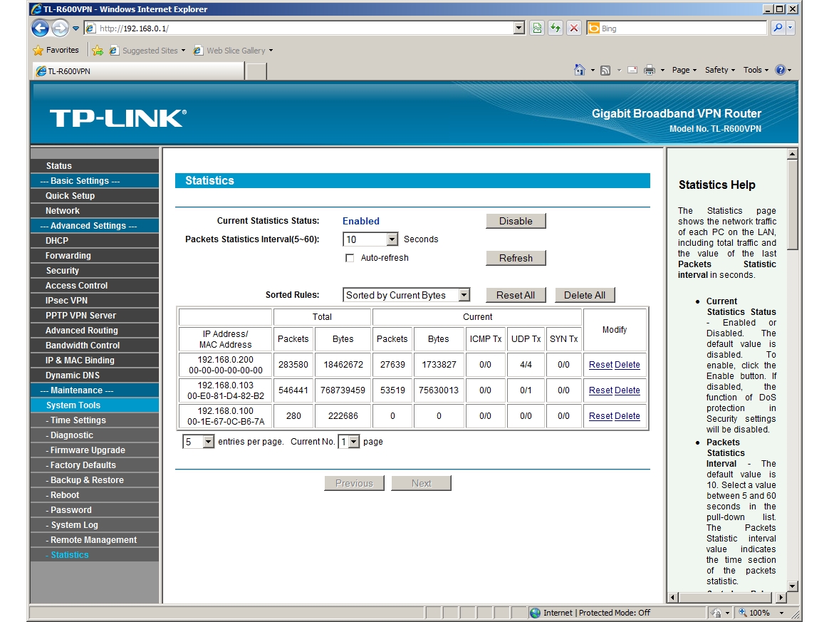 Using the Windows 7 PPTP VPN client, we had no problems connecting to the router from its WAN side and accessing systems on the LAN. However, the router struggled to handle the encryption overheads. TP-Link claims a maximum VPN speed of 2.5MB/sec, and running simple file copies over the link returned average speeds of 2MB/sec. We also noted that while these copies were running, the management web interface froze, showing the router was heavily stressed.