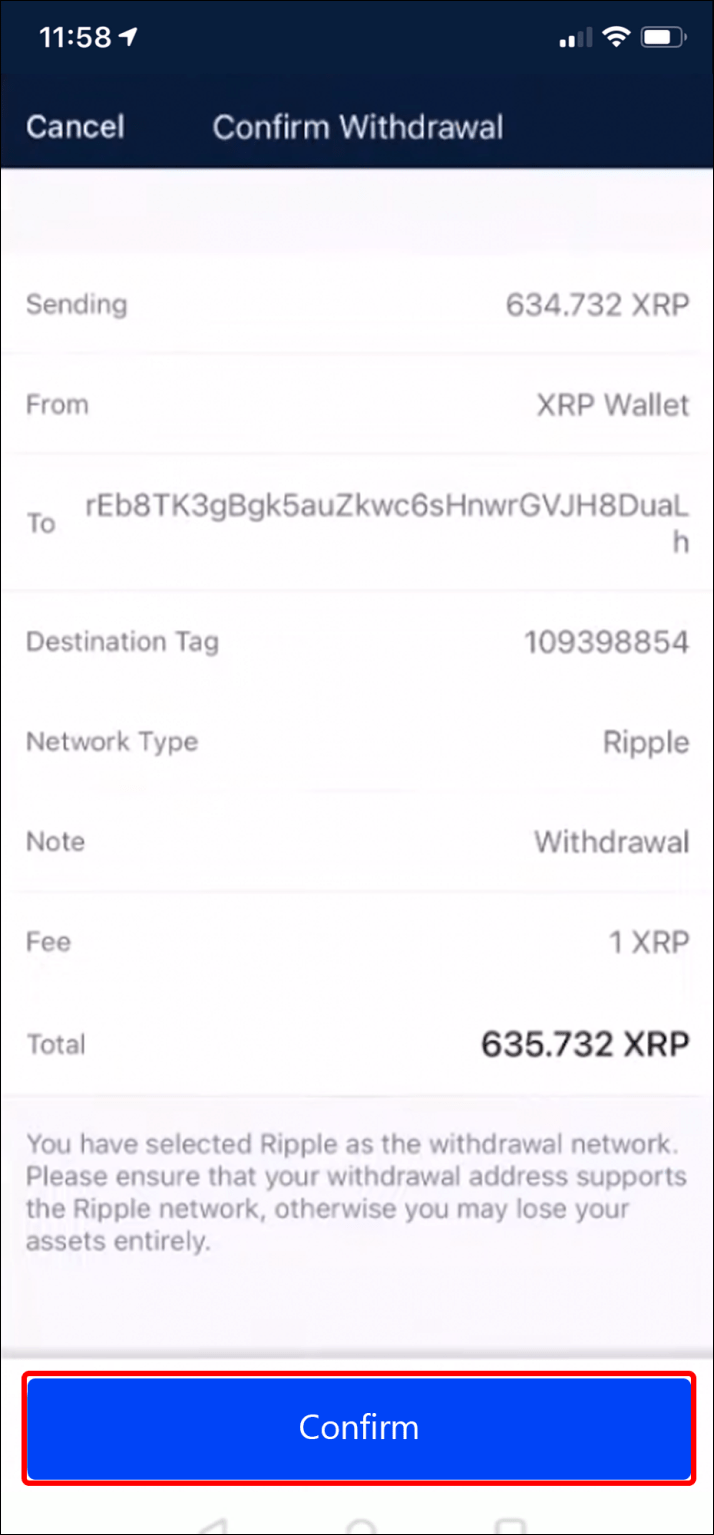 - Tap “Confirm Withdrawal.”