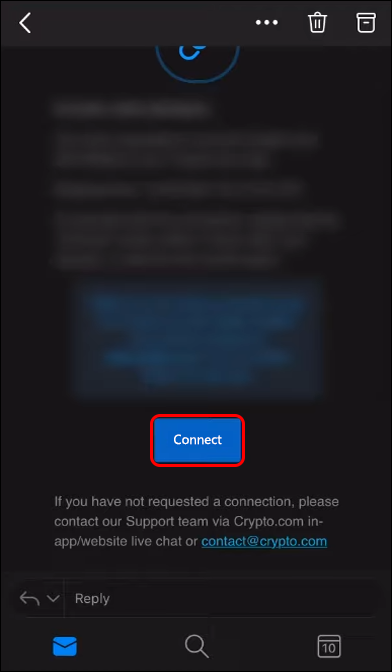 - From the home screen, navigate to “Connect to Crypto.com App.”