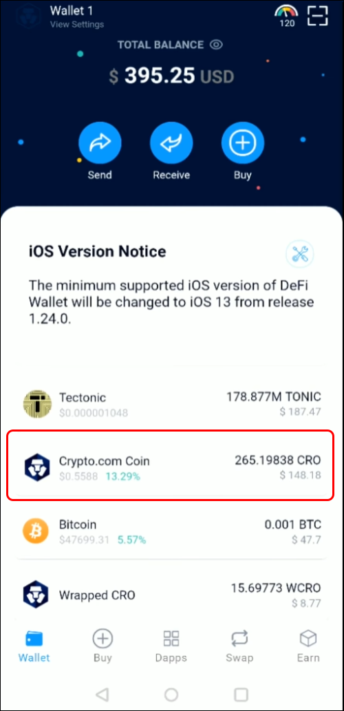- Open your Crypto.com DeFi wallet.