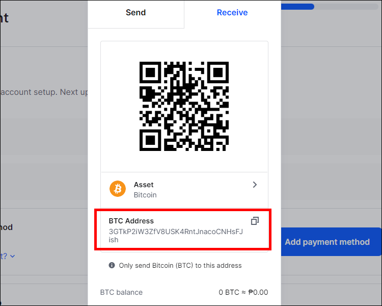 - You will be presented with the wallet address and a QR code. Press the copy button next to the address.