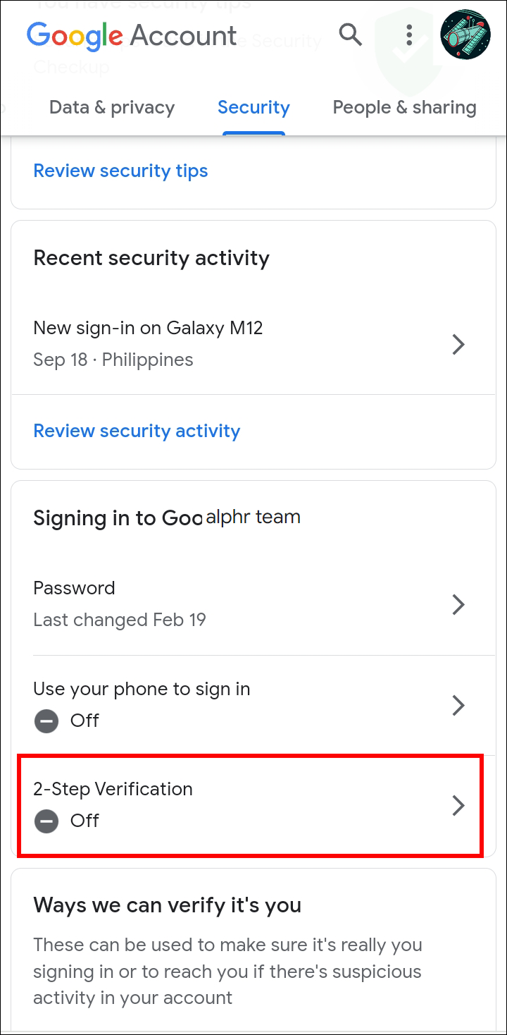 - Tap the “2-Step Verification” option.