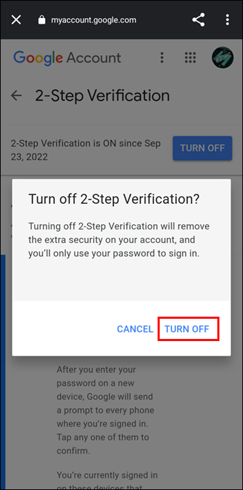 If you ever need to turn off two-factor authentication, the process is even simpler than turning it on.