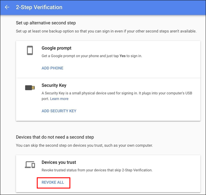 Alternatively, you can hit the “Revoke all” button to remove all trusted devices. This step is recommended when disabling two-factor authentication.