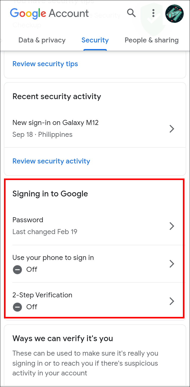 - Locate the “Signing in to Google” section.
