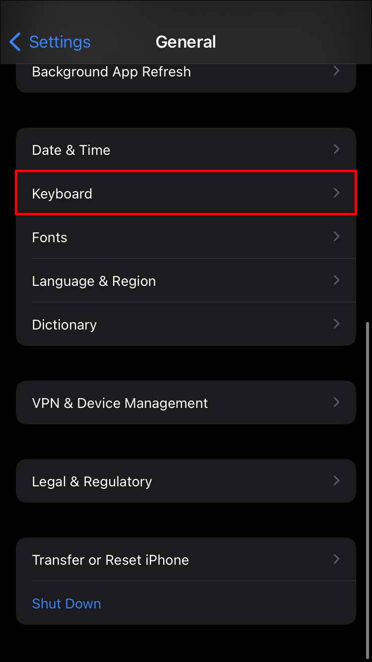 - Scroll down and tap “Keyboard.”