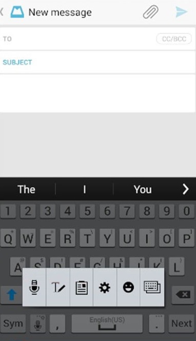 From your Home screen tap on the Settings icon to enter the corresponding menu. Scroll down until you see the Language and Input option, then tap on it. Under Keyboards and Input Methods, look for the link to your Samsung keyboard and tap the Gear icon next to it.