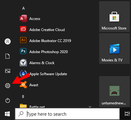 - Click on the Windows key on your keyboard and then select Settings (gear icon).