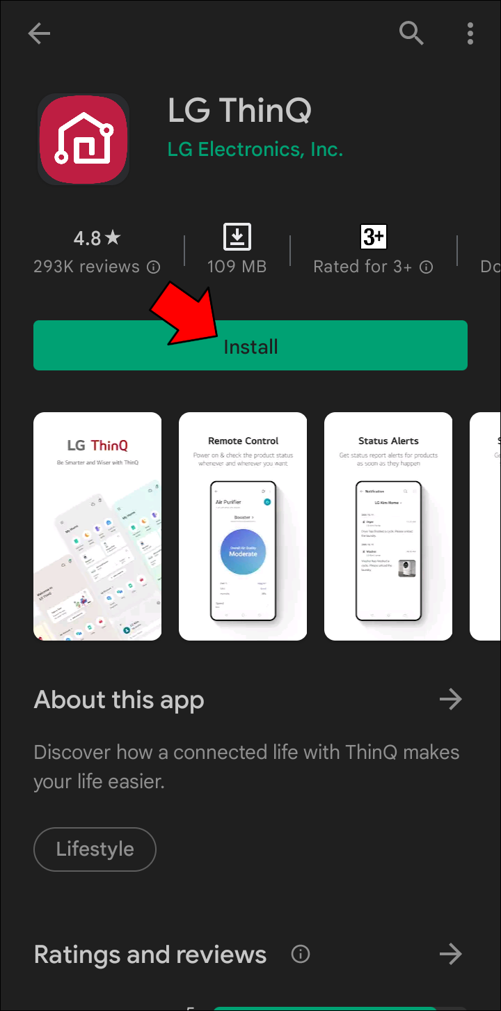 - Download and install the LG ThinQ app from Google Play or the App Store.