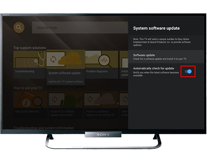 To avoid updating the system manually each time, set the “Automatically check for updates” option to “On.” After that, your TV will download new updates when connected to the internet or during standby mode, depending on the model.